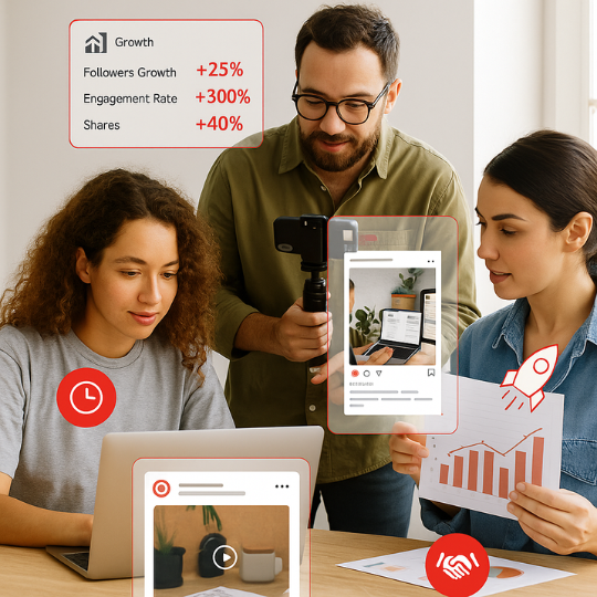আমরা বাংলাদেশের ব্যবসা ও ব্র্যান্ডগুলোর জন্য প্রফেশনাল ভিডিও, গ্রাফিক্স এবং সোশ্যাল মিডিয়া ম্যানেজমেন্ট সেবা প্রদান করি।
